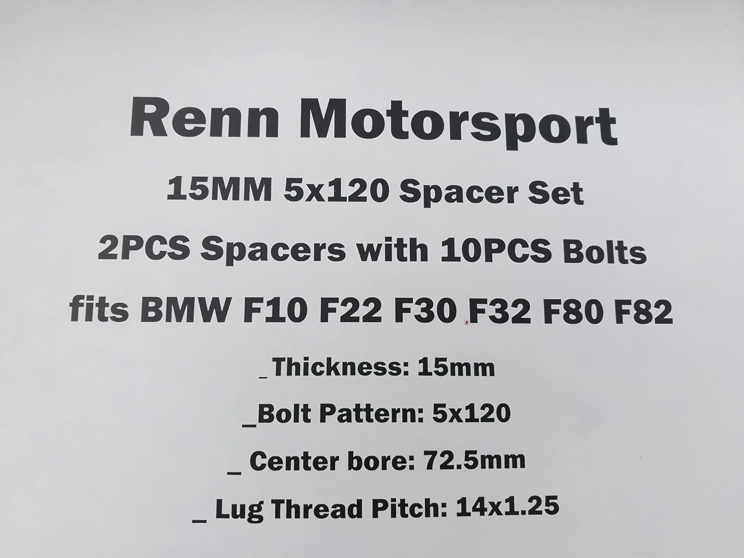 Renn Motorsport 15MM 2PCS 5x120 Spacers with 10PCS Extended Lugs fit BMW's F10 F22 F30 F32 F80 F82